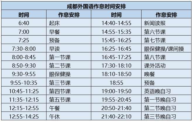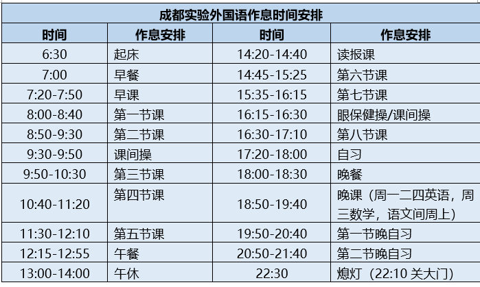 大家都知道高中生是最累的,面对着高考这最后一战成名的机会,不管是学生自己还是家长或者是学校都卯足了劲儿,希望多些时间给孩子们吸收知识。因此,各大名校高中的作息时间表和课表就成为了一大看点,今天敏敏老师就带领大家一起来看看成都各大重点高中的作息时间表,看看家长心目中名校的娃娃是怎么安排作息和学习时间的!